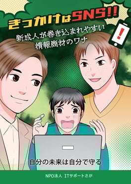 若年層に広がっているSNS等を介した消費者トラブルを未然に防ぐことを目的とした啓発漫画を作成いたしました。消費生活にかかわる教育、情報モラル教育の資料としてご利用ください。
